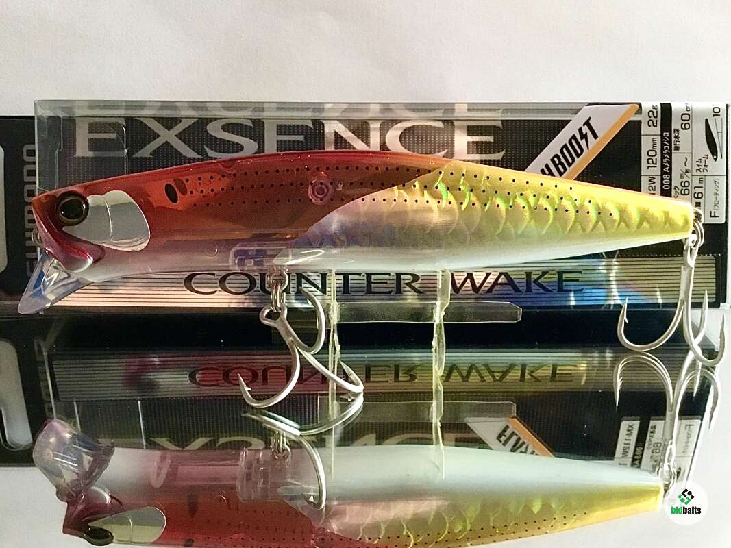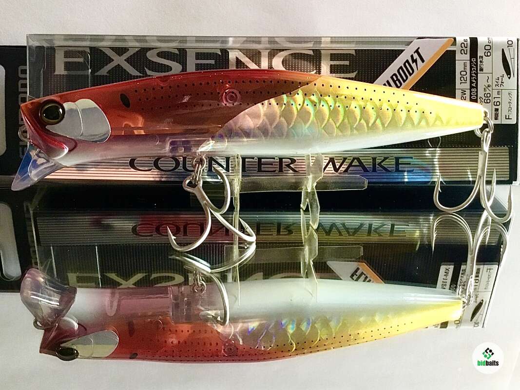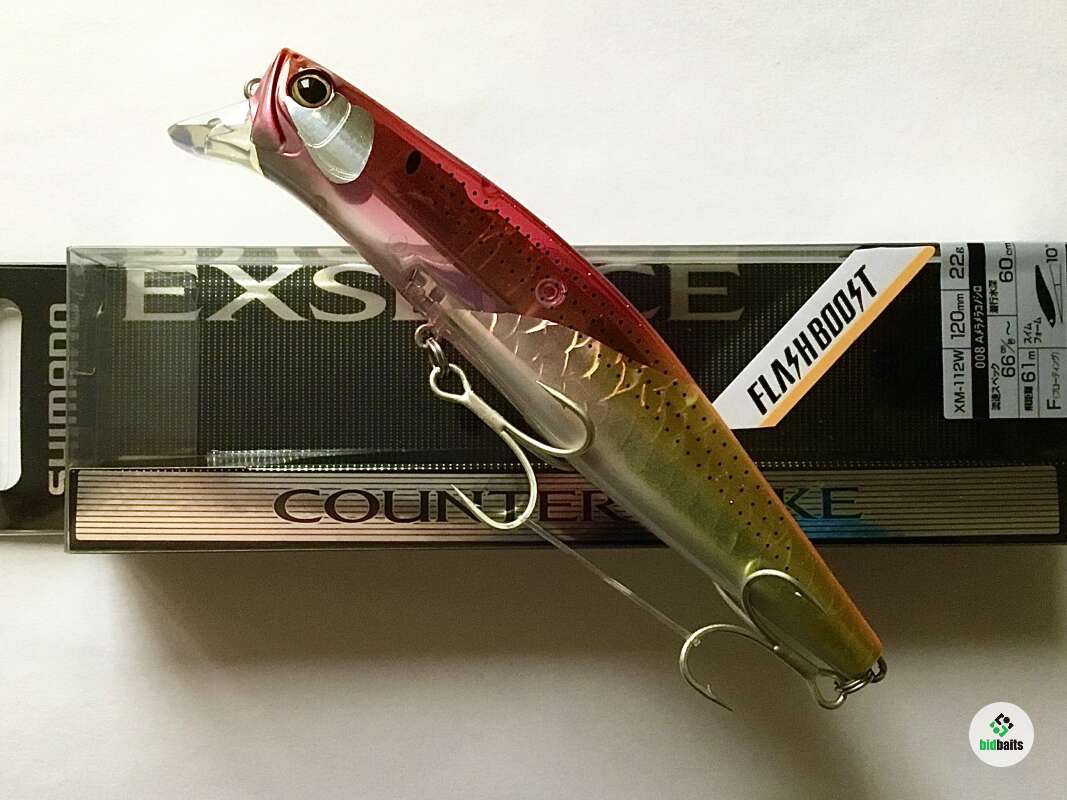 Exsence Counter Wake 120F от японского бренда Shimano представляет собой современный воблер класса минноу. Изначально он разрабатывался для подповерхностной ловли морского басса. При движении приманка создаёт тянущийся след на поверхности и, благодаря медленной поступательной скорости, позволяет соблазнить на поклёвку даже пассивную рыбу. В наших условиях Exsence Counter Wake отлично подойдёт для ловли щуки и окуня на мелководье. Универсальный размер приманки будет привлекать хищника любого размера, а положительная плавучесть поможет обходить острова травы и коряги. Модель выделяется применением новейших технологий компании, среди которых: Flash Boost и Jet Boost. Первая представляет собой встроенные в тело приманки зеркальные пластины, которые во время проводки колеблются, создавая различные мерцания и блики в воде. Это помогает хищнику заметить приманку издалека в мутной воде или при рыбалке по площадям. Вторая технология заключается в специальном механизме смены центра тяжести для максимально дальнего заброса. Благодаря ей приманка летит точно и прогнозируемо, в то же время при попадании в воду воблер занимает правильное положение для стабильной игры. Для максимально реалистичного внешнего вида, приманка покрыта голографической пленкой Scaleboost. С ней даже самый осторожный хищник не отличит приманку от небольшой рыбки!