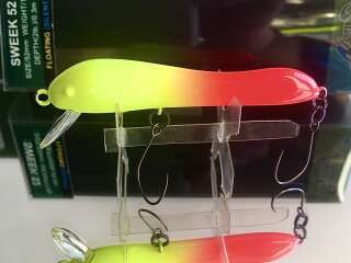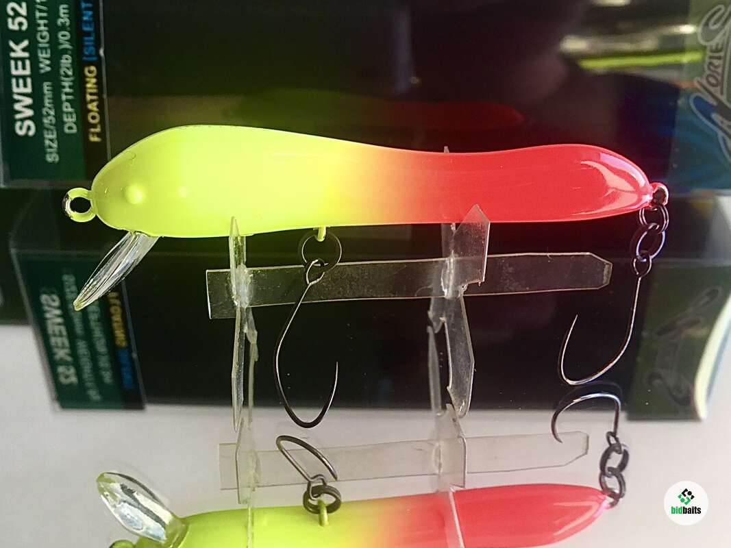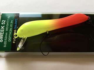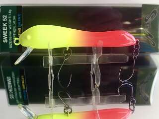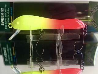 Большинство моделей имеет окраску, приближенную к натуральной, так что даже самый осторожный хищник не испугается. Центр тяжести воблеров смещен в головную часть, что дает легкий крен вперед и делает игру Sweek более привлекательной. Минноу уверенно облавливают мелководные места на удалении от береговой линии. Они удерживаются в заданном горизонте даже на быстрых скоростях проводки благодаря пластиковой лопатке спереди. Что касается оснащения, то у моделей этой серии оно тоже продумано. Для того, чтобы у рыболова была возможность охотиться за трофеями без причинения им большого вреда, воблеры имеют два безбородых одинарных крючка. За счет своей формы и игры, воблер максимально реалистично имитирует малька, а также упавшую в воду стрекозу. При равномерной проводке и твичинге, Sweek 52 создает рябь на поверхности воды, что также дополнительно провоцирует пассивную форель на поклевку.
