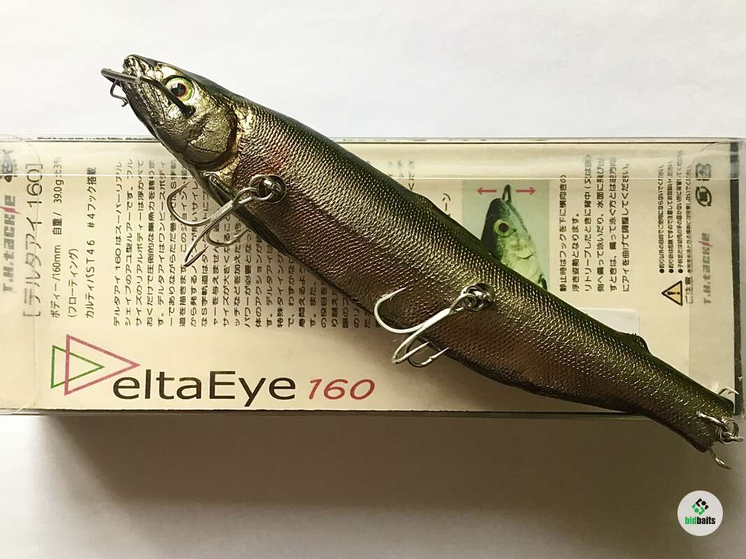 T.H.Tackle Delta Eye 160F производятся ограниченными сериями, так как ручная работа не может быть массовой. Неповторимая геометрия обеспечивает такой же неповторимый рисунок игры при проводке. Воблер в статичном состоянии в воде располагается завалившись на бок, как раненая или больная рыбешка. TH Tackle Delta Eye 160F - спроектирован таким образом, что результативные анимационные рисунки можно легко подбирать исходя из состояния активности рыбы в водоеме. Длинные плавные потяжки удилищем отрисуют приманкой в воде широкие галсы, с разворотами, и мощными завихрениями водной поверхности, заметными хищнику. Короткие, не агрессивные движения вершинкой удилища заставят приманку имитировать состоянии сильно раненной рыбки.. Также от приманки можно добиться и проводки в стиле walking the dog, с некоторой долей хаотичности в направлениях смещений от направления движения. В носовой части TH Tackle Delta Eye 160F японские инженеры применили новаторскую идею, которая позволила воблеру получить ещё больше свободы в рывковой проводке. Приманка к застежке или поводку крепится через треугольную скобу с ребрами примерно 1,5 и 2,5см, по которой поводок или застежка перемещаются во время осуществления проводки. Поэтому каждый новый рывок будет непохожим на предыдущий и он может отличаться и по направлению разворота и стилю покачиваний приманки. Основной обьект ловли - щука крупных и средних размеров.