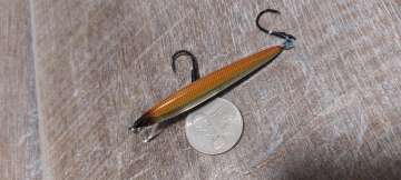 Состояние на фото - в этом случае затрудняюсь дать объективную оценку воблеру, как правило следы использования ярко выражены, может быть не всё хорошо с лкп,но видимых дефектов по функционалу не обнаружено