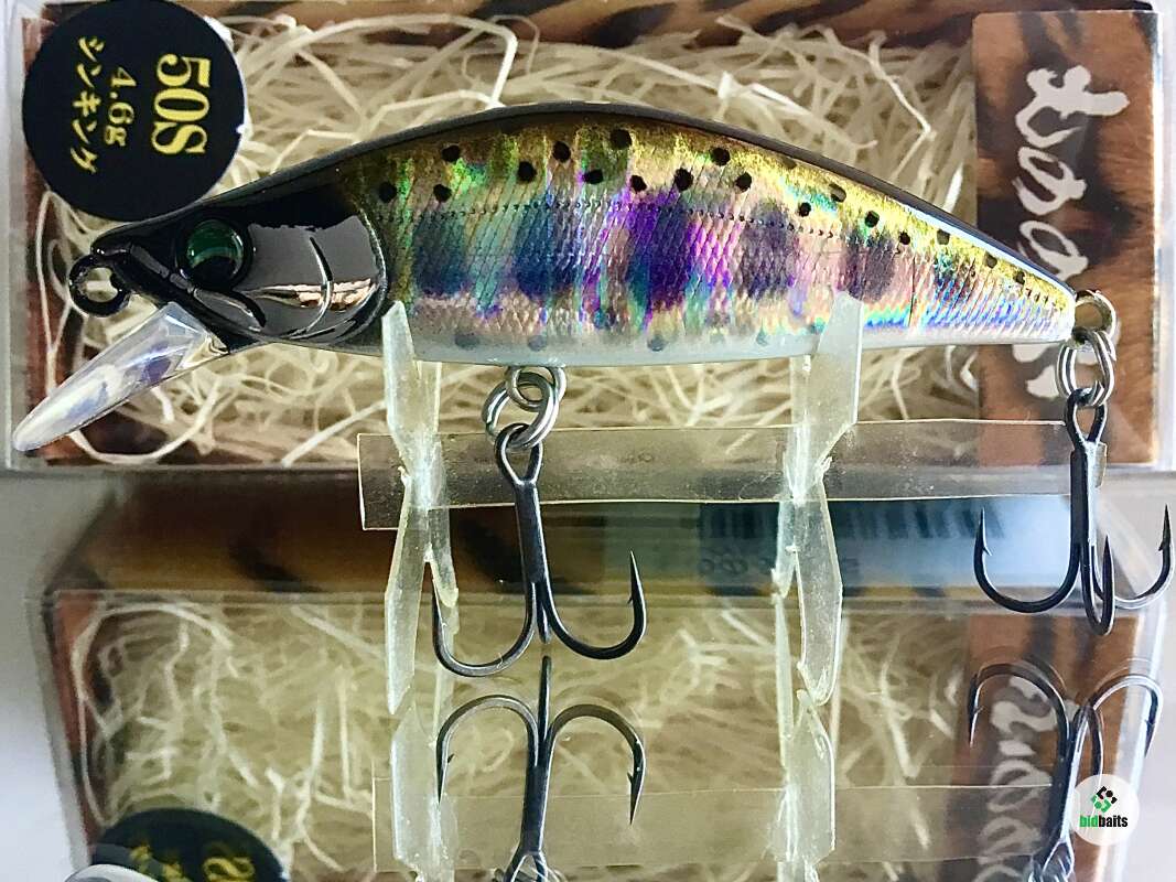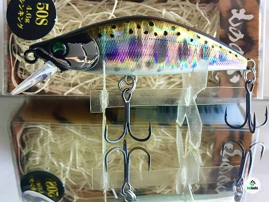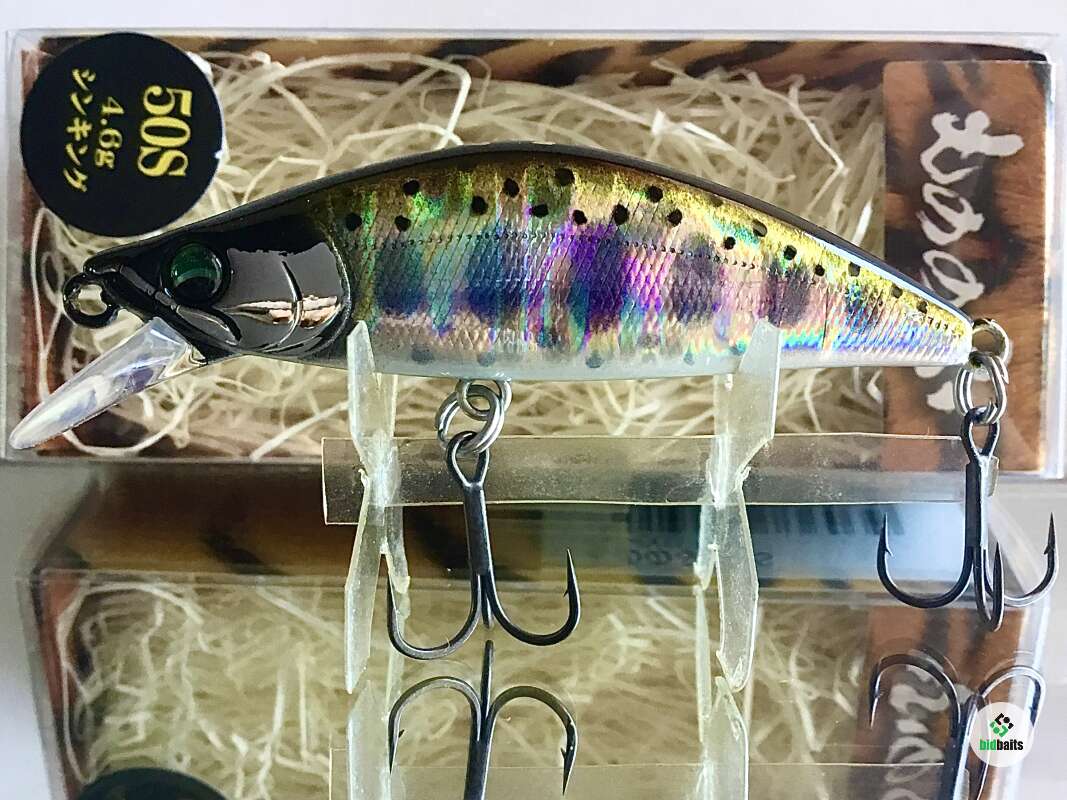 MONONOFU 50S - одна из самых компактных моделей от компании BASSDAY, рассчитанный на ловлю ручьевой и речной форели, в условиях средней полосы хорошо показал себя при ловле белого хищника: голавля, язя, жереха .MONONOFU 50S, предназначенный в первую очередь для ловли в верховьях и на мелководьях, не теряется и на основном течении средних рек с большими глубинами, привлекая активными колебаниями и более крупные особи. Фиксированная отгрузка в нижней части тела обеспечивает отличный полёт и точность заброса, даже когда приходится выполнять его из неудобного положения. Сопротивление сильному течению добавляет игре частотности и бликов от наклонов тела вправо-влево. В более спокойном водяном потоке приманка движется более вальяжно, демонстрируя выраженный роллинг. При рывках может менять горизонт проводки на более высокий, после чего, на паузе, «сыпется» вниз, продолжая дрожать.