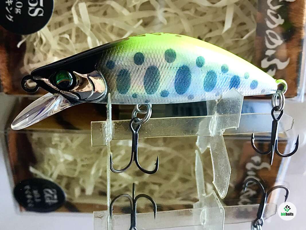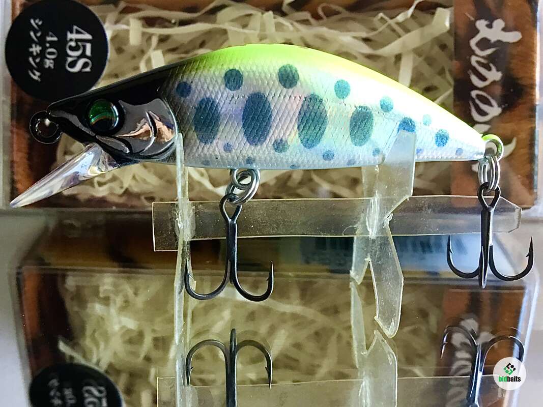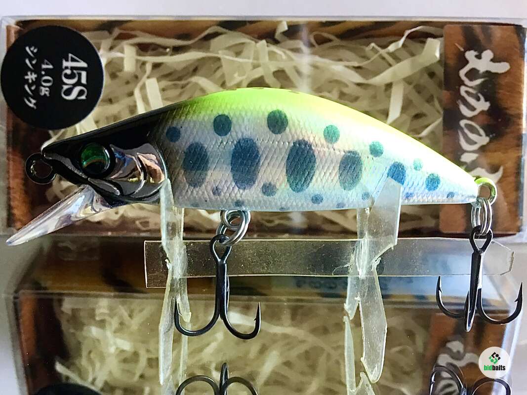 MONONOFU 45S - одна из самых компактных моделей от компании BASSDAY, рассчитанный на ловлю ручьевой и речной форели, в условиях средней полосы хорошо показал себя при ловле белого хищника: голавля, язя, жереха .MONONOFU 45S , предназначенный в первую очередь для ловли в верховьях и на мелководьях, не теряется и на основном течении средних рек с большими глубинами, привлекая активными колебаниями и более крупные особи. Фиксированная отгрузка в нижней части тела обеспечивает отличный полёт и точность заброса, даже когда приходится выполнять его из неудобного положения. Сопротивление сильному течению добавляет игре частотности и бликов от наклонов тела вправо-влево. В более спокойном водяном потоке приманка движется более вальяжно, демонстрируя выраженный роллинг. При рывках может менять горизонт проводки на более высокий, после чего, на паузе, «сыпется» вниз, продолжая дрожать.