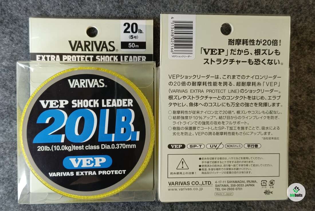 Премиальный поводковый материал Varivas VEP Shock Leader для использования его в качестве нейлонового шок лидера, произведенный по технологии VEP. Отличается повышенной для нейлона аббразивной устойчивостью (в 20 раз выше показателя стандартной нейлоновой лески), что приближает его по этому показателю к флюорокарбону. При этом сохраняет мягкость, присущую нелоновым лескам и подходит для использования в качестве длинных шок лидеров для ловли в заброс, обычной спиннинговой ловли, лёгкого и тяжёлого джиггинга - оффшорного и берегового.