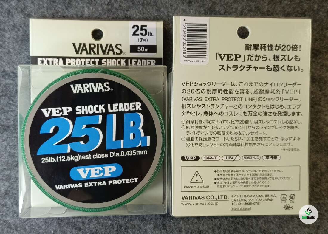 Премиальный поводковый материал Varivas VEP Shock Leader для использования его в качестве нейлонового шок лидера, произведенный по технологии VEP. Отличается повышенной для нейлона аббразивной устойчивостью (в 20 раз выше показателя стандартной нейлоновой лески), что приближает его по этому показателю к флюорокарбону. При этом сохраняет мягкость, присущую нелоновым лескам и подходит для использования в качестве длинных шок лидеров для ловли в заброс, обычной спиннинговой ловли, лёгкого и тяжёлого джиггинга - оффшорного и берегового.