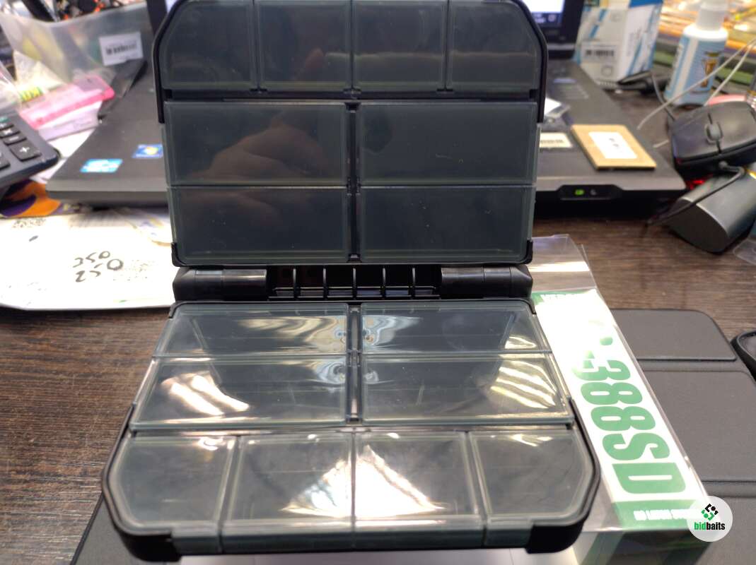 Коробка под разные мелкие вещички Meiho Versus ???? 388SD.8 больших и 8 маленьких отсеков.Размер:122*87*27 мм.Цвет: Чёрный.Доставка Сдек за счёт покупателя.