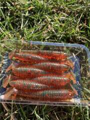 120руб пачка, в пачке 6шт размер 100мм до загиба хвоста , приманки выполнены из плавающего силикона, могу сделать ваши цвета , аттрактант по желанию, жёсткость силикона тоже по желанию