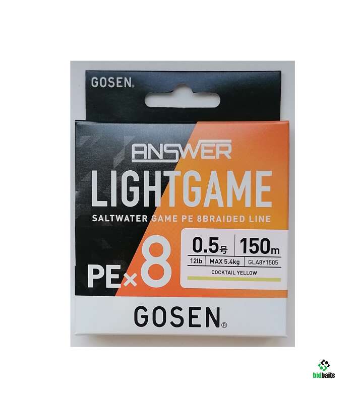 Плетёный 8-ми жильный шнур GOSEN Answer Light Game PE x8 # 0.5 (12lb) 5,4кг, размотка 150м, цвет- Желтый коктейль