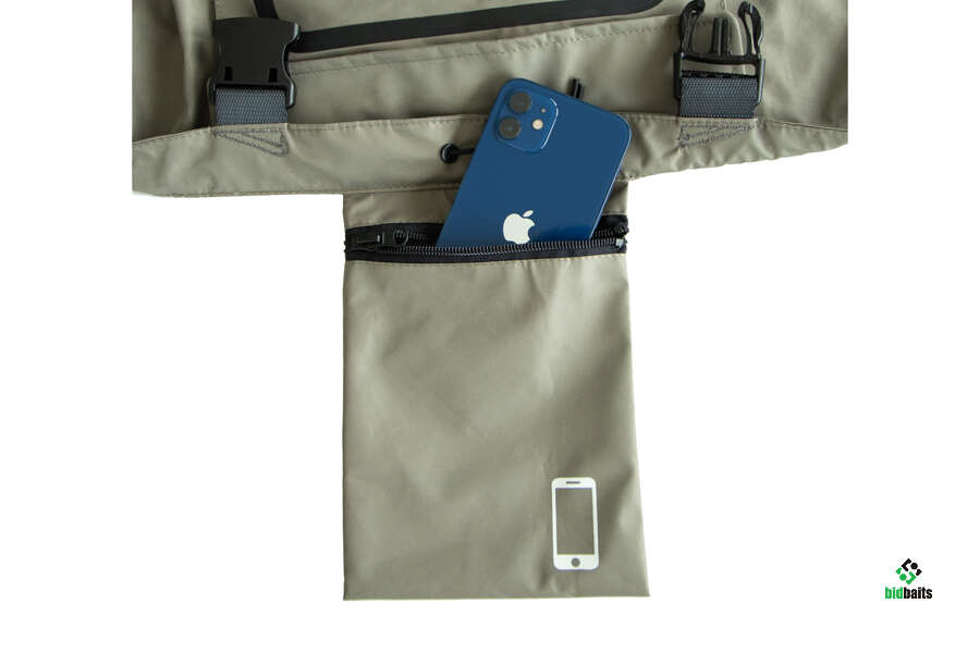 - внешним карго- карманом и карманом с водонепроницаемой молнией,