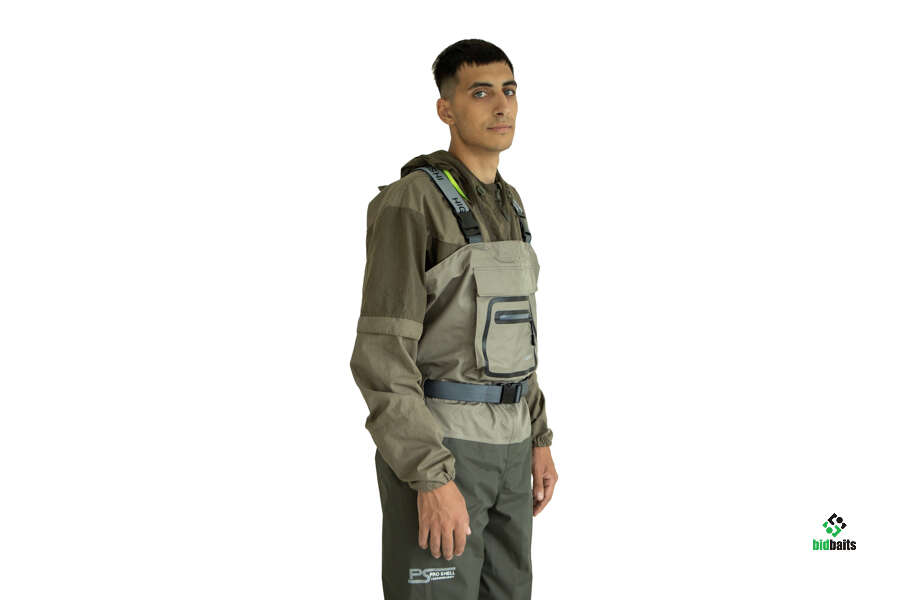 Водонепроницаемые дышащие вейдерсы от компании Хигаши оснащенные литым сапогом на резиновой подошве (без войлока). Данная модель выполнена по технологии PRO SHELL TECHOLOGY - нижняя часть изделия сделана из 5-слойного мембранного материала AMBER -TEX DEFENDER (24000 мм в. ст. - 5000 гр /24часа/м2 ) /верхняя часть из 3 -слойного мембранного