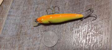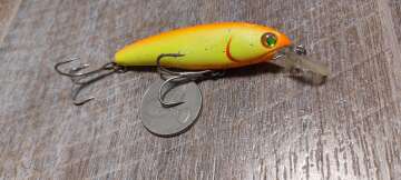 Состояние на фото - в этом случае затрудняюсь дать объективную оценку воблеру, как правило следы использования ярко выражены, может быть не всё хорошо с лкп,но видимых дефектов по функционалу не обнаружено