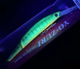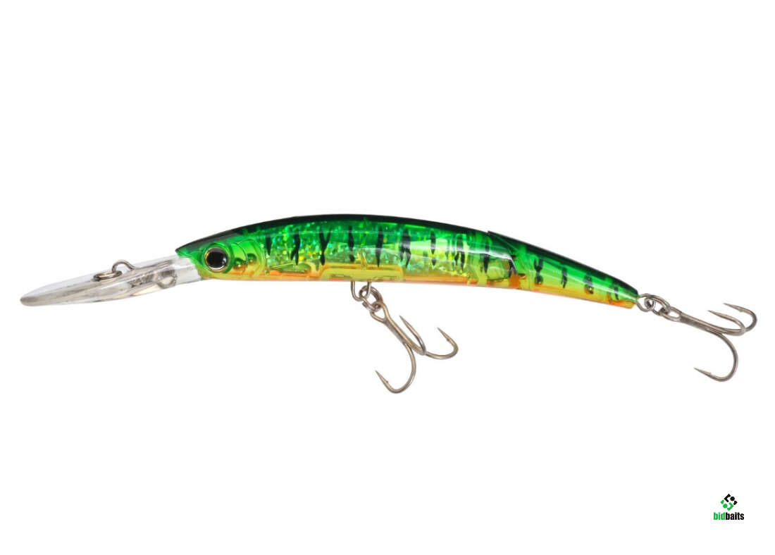 3D Minnow Deep Diver Jointed 130F является ярким представителем составных приманок от японского производителя Yo-Zuri. Этот глубоководный воблер по своей сути модифицированный вариант, отлично зарекомендовавшей себя уже модели Crystal 3D Minnow. Его отличительной особенностью является хвостовая часть, которая составляет треть длины всего корпуса. Элементы тела соединены надёжным и крепким двухшарнирным запатентованным соединением «Door Hinged». Это позволяет производить более волнообразные и естественные движения на проводке, без заваливания на бок. Внутри корпуса смонтирована звуковая система Rattle Ball, которая создаёт сильный раздражающий шумовой эффект. Кроме того, приманка снабжена и запатентованной призматической системой, которая провоцирует многогранные, хорошо заметные в любых условиях блики. Благодаря большой носовой лопатке, воблер способен быстро заглубляться на 4-6 метра и отлично удерживать нужный рабочий горизонт в толще воды. Наиболее лучшей проводкой будет равномерная с чередованием потяжек и пауз. 3D Minnow Deep Diver Jointed 130F подходит как для морской рыбалки, так и для ловли в пресной воде. Показывает неплохие результаты при ловле трофейной щуки и судака.