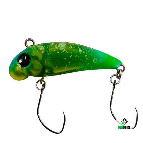 Mukai Little Pogo 33 - донный раттлин, имеет вольфрамовую огрузку в головной части, в результате чего приманка всегда падает на дно головой вниз, при этом хвостовая часть приподнимается в воде и медленно покачивается влево-вправо. Раттлин отлично подходит для ловли пассивной форели со дна рывковыми проводками и волочением по дну. Виб оснащен двумя одинарными безбородыми крючками.