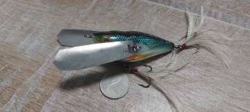 Состояние на фото - в этом случае затрудняюсь дать объективную оценку воблеру, как правило следы использования ярко выражены, может быть не всё хорошо с лкп,но видимых дефектов по функционалу не обнаружено