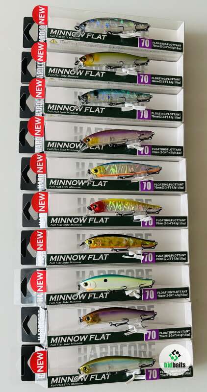Шумный воблер Duel Hardcore Minnow Flat 70 F Вес 4.5 g Цвет #R1357-GHPB #щука #судак
