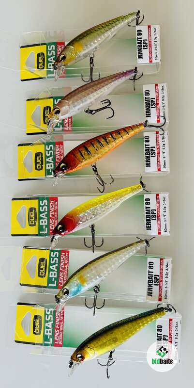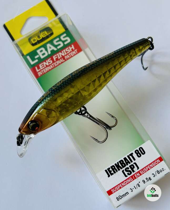 Шумный воблер Duel L-Bass Jerkbait 80 SP Вес 9.5 g Цвет #F1214-MGGB #хищник