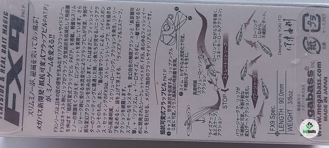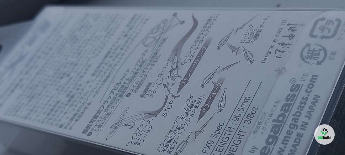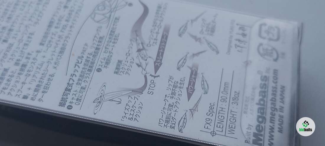 • Воблер Megabass FX•9 Strobe - это специфическая приманка, характерной чертой которой является складывающаяся лопасть. Особенность расположения и балансировка данной модели является фактом, что при выбросе, центр тяжести смещается в хвостовую часть, и воблер летит хвостом вперед. Сопротивление ветра сгибает лопасть и она прижимается к телу, благодаря чему сопротивление ветра уменьшается еще, и приманка летит на как можно дальнее расстояние. Стоит приманке попасть в воду, направляющие притягивающие движение рыболова и само сопротивление воды расправляет лопасть, и приманка заглубляется на определенную глубину! Если же прекратить движение, то воблер всплывает, почти до конца снова прижимая лопасть к телу. Естественно, игра пи этом становится определенно уникальной, и только в Ваших руках раскрыть все возможности данного воблера.