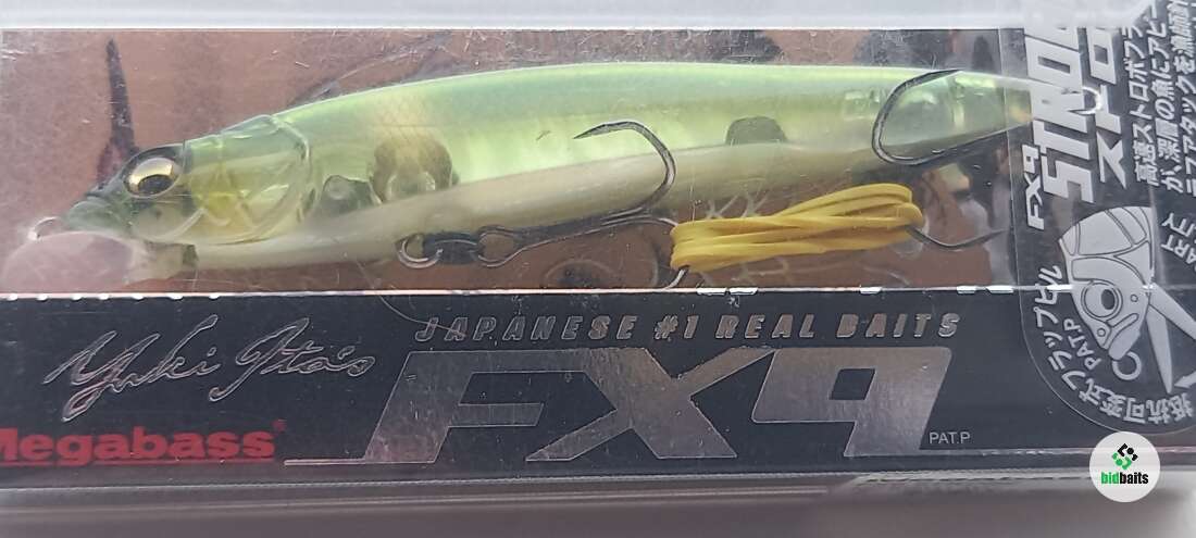 Megabass FX9 Strobe отличается от просто модели Megabass FX9 тем, что имеет внутренний узор, состоящий из блестящего материала, отражающий солнечные блики во все стороны. Кроме того, крючки, используемые в данной модели спортивного направления, без бородки