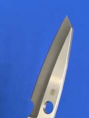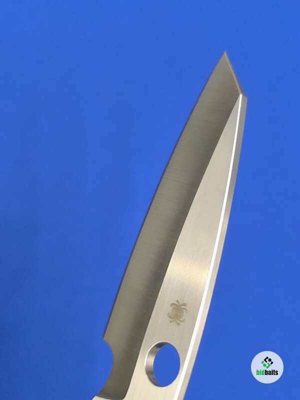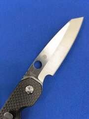 Клинок длиной 86 мм имеет форму, близкую к Wharncliffe (“овечье копытце”), что позволяет более точно контролировать рез. Острие ножа опущено к линии режущей кромки, которая имеет небольшой плавный изгиб вверх. Прямые спуски от середины полотна клинка формируют острое лезвие и тонкое острие.