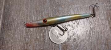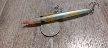 Состояние на фото - в этом случае затрудняюсь дать объективную оценку воблеру, как правило следы использования ярко выражены, может быть не всё хорошо с лкп,но видимых дефектов по функционалу не обнаружено