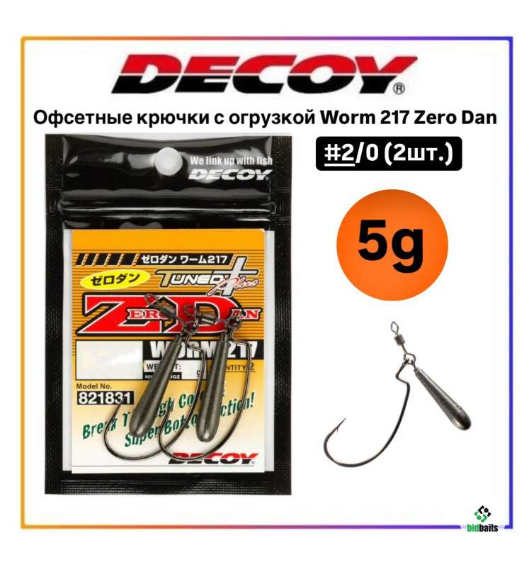 DECOY WORM 217 Zero Dan — серия специальных офсетных крючков для ловли донной оснасткой. Оснастка состоит из качественного офсетного крючка. грузила и карабина. При ловле такой оснасткой можно использовать большинство видов силиконовых приманок. Рекомендуется медленная проводка с постоянными небольшими подергиваниями спиннинга. Такая проводка способна спровоцировать даже пассивного хищника.