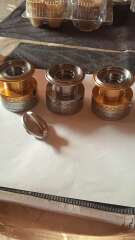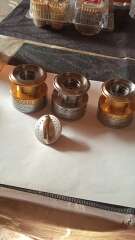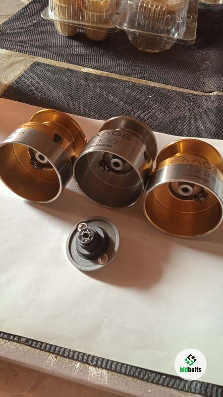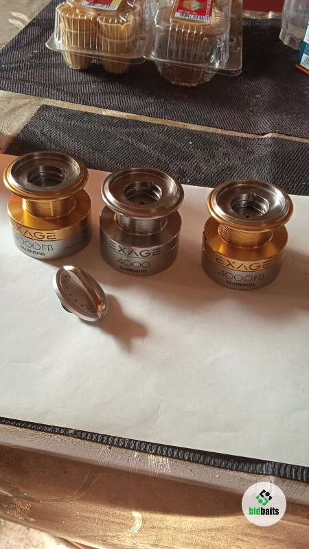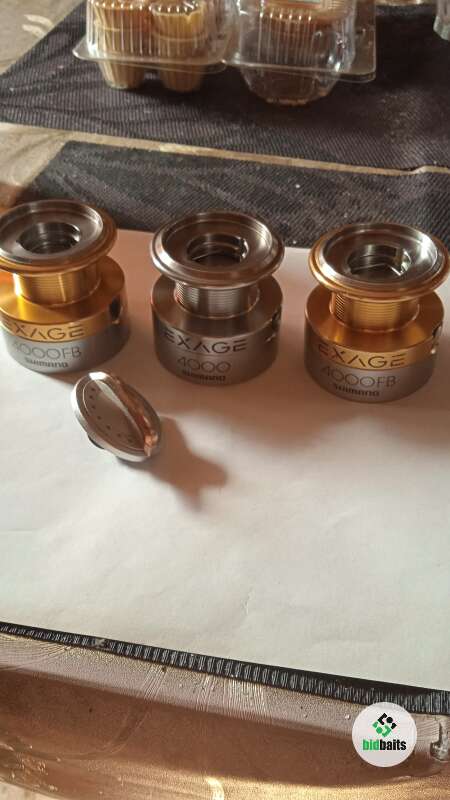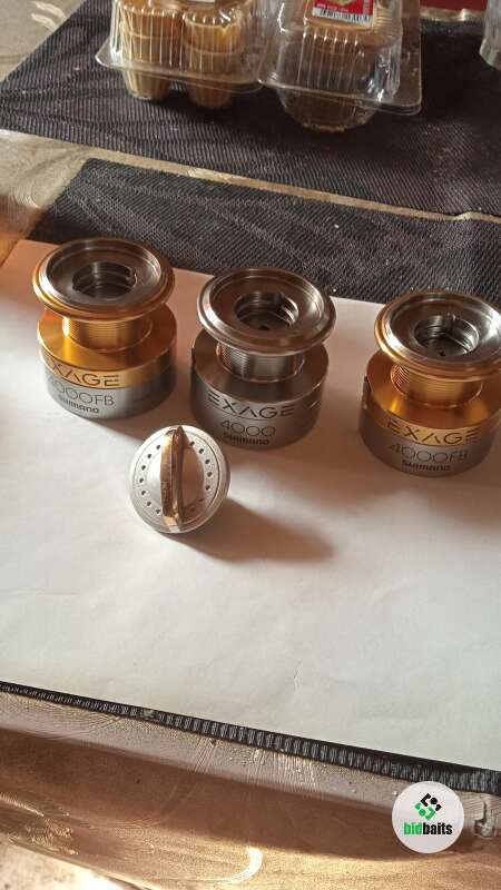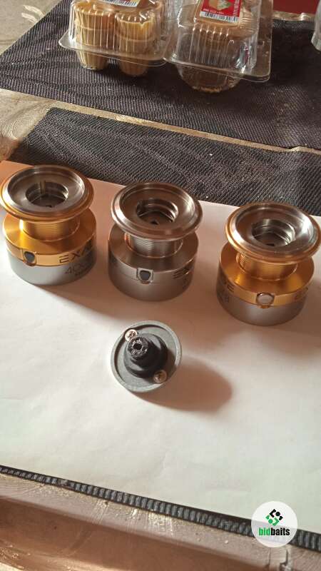 Три шпули для катушки Shimano 4000 FB с гайкой фрикциона б/у в хорошем состоянии, трещетки все работают, по бортикам шпуль царапин, сколов и тд нет только на одной шпуле, работе катушке не мешает, а также на этой же шпуле установлена круглая клипса, есть незначительные потертости от времени на цифрах и буквах. Цена указана за три шпули с гайкой фрикциона.