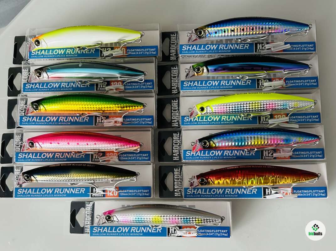 Шумный Воблер DUEL HARDCORE SHALLOW RUNNER H2 120F Вес 21 гр. Цвет #F1194-HGR #щука #хищник