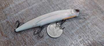 Состояние на фото - в этом случае затрудняюсь дать объективную оценку воблеру, как правило следы использования ярко выражены, может быть не всё хорошо с лкп,но видимых дефектов по функционалу не обнаружено