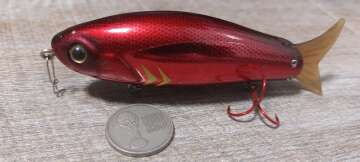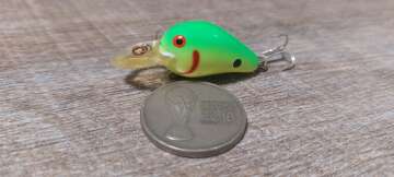 Состояние на фото - в этом случае затрудняюсь дать объективную оценку воблеру, как правило следы использования ярко выражены, может быть не всё хорошо с лкп,но видимых дефектов по функционалу не обнаружено