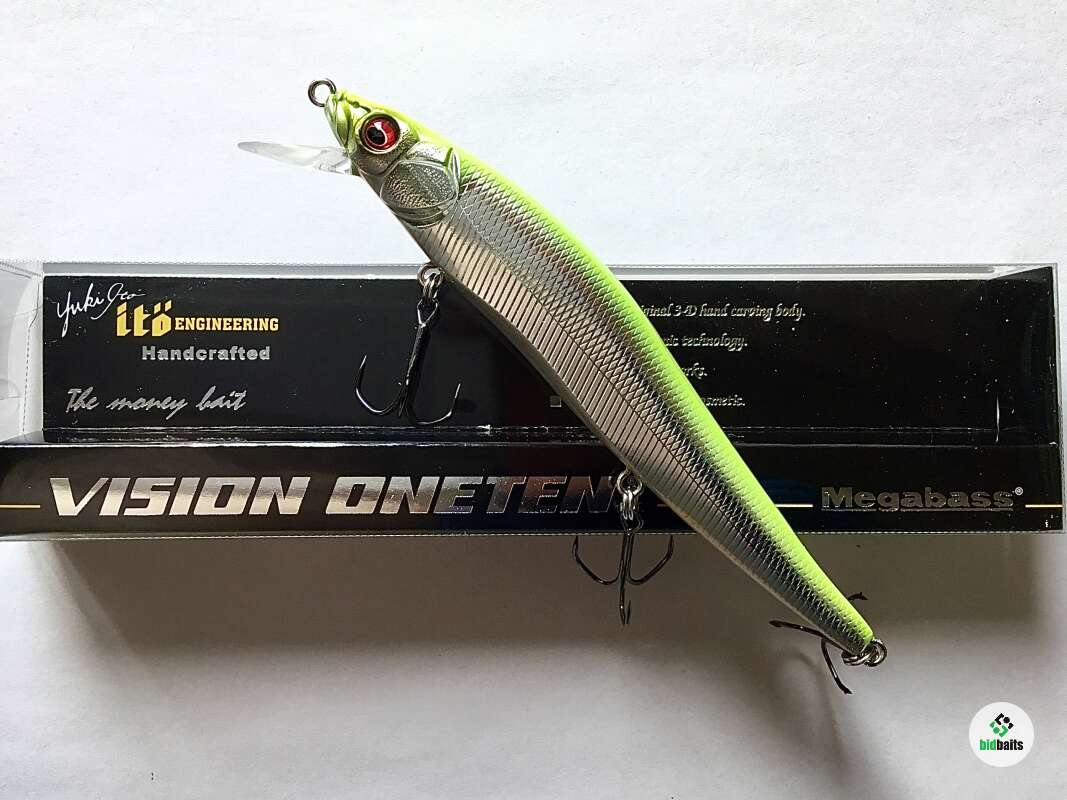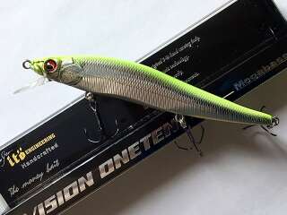 Megabass Vision OneTen 110 – это медленно всплывающая приманка, очень послушная, реагирует на каждое подергивание удилищем. Воблер оснащен системой специальных балансиров. Благодаря их перемещению в хвостовую часть дальность заброса высока. При проводке балансиры смещаются в переднюю часть, закрепляя «танец» вокруг своего гравитационного воздействия. Приманка медленно всплывает при паузах, и если в такой момент плавно дать ходу, приманка начинает немного вилять, поскольку балансиры имеют возможность двигаться в поперечном направлении. Воблер отлично работает на любых типах проводки. Основной объект ловли щука разных размеров.