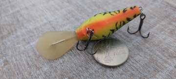 Состояние на фото - в этом случае затрудняюсь дать объективную оценку воблеру, как правило следы использования ярко выражены, может быть не всё хорошо с лкп,но видимых дефектов по функционалу не обнаружено
