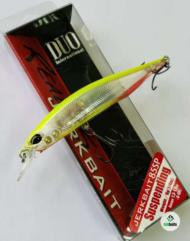 Realis Jerkbait – одна из самых популярных серия воблеров для ловли щуки в российских условиях от японской компании DUO. Приманка имеет классическую форму минноу с уплощённостью корпуса аналогичной воблерам типа Flat Side Crank, что заметно усиливает блики в воде при движении приманки. Прочная лопасть имеет тонкие края и создаёт минимальное сопротивление в воздухе при забросе приманки. Дальнему забросу также способствуют два 6-мм вольфрамовых шарика, которые при полёте приманки смещаются в хвостовую часть. После приводнения и начала проводки, шары возвращаются в рабочее положение и, совместно с зафиксированными в различных частях приманки грузиками меньшего размера, наделяют приманку отличным балансом и игрой. Во время проводки эти грузики также создают звуковые высокочастотные колебания, привлекающие хищника с дальнего расстояния. Воблер очень «послушный» и реагирует на малейшее движение спиннинга, что позволяет рыболову экспериментировать с вариантами подачи. Во время пауз хищника легко спровоцирует на атаку ярко выраженный роллинг – привлекательное покачивание приманки вдоль продольной оси. Особенностью Realis Jerkbait является то, что он отлично играет не только на твичинге, но и на классической равномерной проводке с паузами и без. Серия представлена в самых популярных размерах для российских условий, каждый из которых своеобразен и отличается поведением в воде: 100, 110, 120 и 130мм.