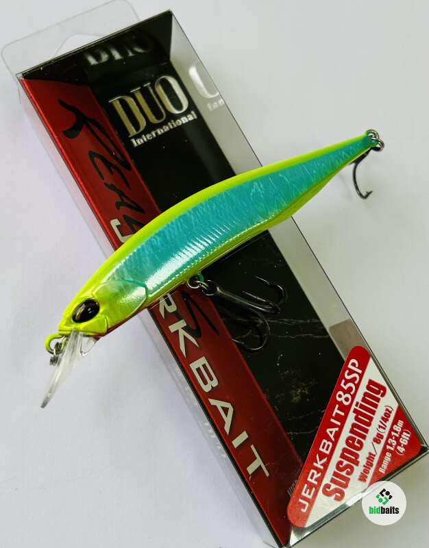 Realis Jerkbait – одна из самых популярных серия воблеров для ловли щуки в российских условиях от японской компании DUO. Приманка имеет классическую форму минноу с уплощённостью корпуса аналогичной воблерам типа Flat Side Crank, что заметно усиливает блики в воде при движении приманки. Прочная лопасть имеет тонкие края и создаёт минимальное сопротивление в воздухе при забросе приманки. Дальнему забросу также способствуют два 6-мм вольфрамовых шарика, которые при полёте приманки смещаются в хвостовую часть. После приводнения и начала проводки, шары возвращаются в рабочее положение и, совместно с зафиксированными в различных частях приманки грузиками меньшего размера, наделяют приманку отличным балансом и игрой. Во время проводки эти грузики также создают звуковые высокочастотные колебания, привлекающие хищника с дальнего расстояния. Воблер очень «послушный» и реагирует на малейшее движение спиннинга, что позволяет рыболову экспериментировать с вариантами подачи. Во время пауз хищника легко спровоцирует на атаку ярко выраженный роллинг – привлекательное покачивание приманки вдоль продольной оси. Особенностью Realis Jerkbait является то, что он отлично играет не только на твичинге, но и на классической равномерной проводке с паузами и без. Серия представлена в самых популярных размерах для российских условий, каждый из которых своеобразен и отличается поведением в воде: 100, 110, 120 и 130мм.