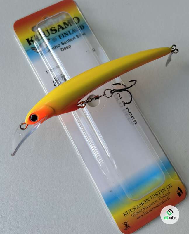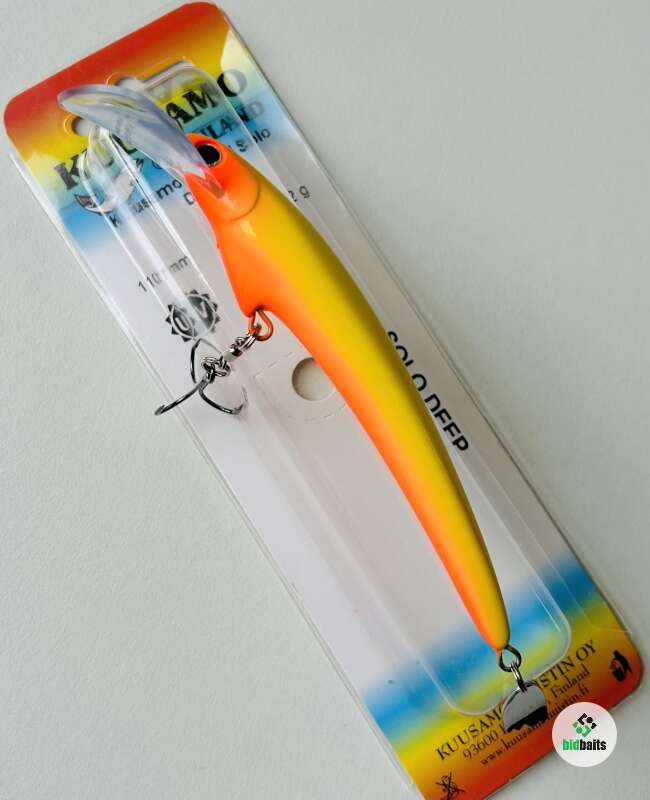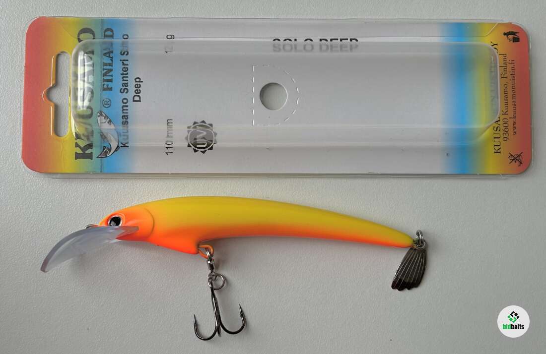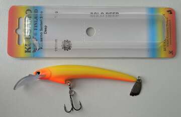 Плавучесть: плавающийНовая модель Santeri Solo Deep разработана для троллинга судака. Большая лопасть на подбородке в форме седла обеспечивает болшее заглубление. Воблеры оснащены одним тройником с бородками, обеспечивающими хорошее удержание рыбы. Инновационный лепесток Evalippa в хвостовой части воблера создает дополнительную привлекательность для хищника при проводке.Весь 2015 год он тестировался в различных водоемах Финляндии, где показал отличные результаты по судаку, лососю и озерной форели. Воблер обладает среднеактивной игрой с небольшой амплитудой и отклонением от оси. Такая игра присуща традиционным финским мастеровым воблерам для лосося и судака.Благодаря выгнутой эластичной лопасти из неломающегося пластика игра не "срывается" при высокой скорости проводки, что немаловажно при ловле троллингом лосося. Ловля судака "на дорожку" является одним из традиционных видов ловли доступных для этой приманки. Летними вечерами судак выходит кормиться на отмели. В таких случаях воблер используется для ловли в заброс с равномерной проводкой.