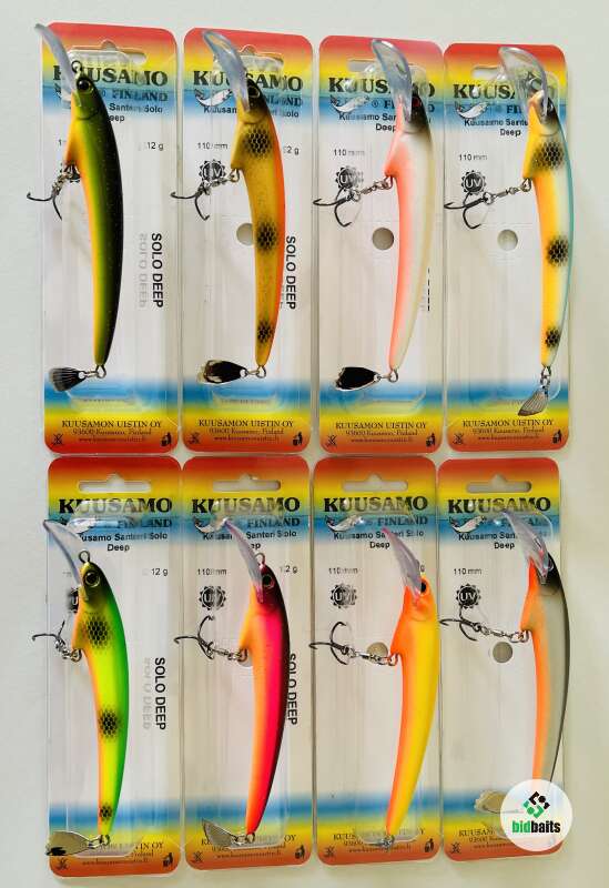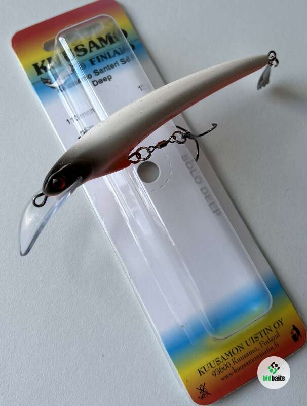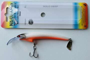 Плавучесть: плавающийНовая модель Santeri Solo Deep разработана для троллинга судака. Большая лопасть на подбородке в форме седла обеспечивает болшее заглубление. Воблеры оснащены одним тройником с бородками, обеспечивающими хорошее удержание рыбы. Инновационный лепесток Evalippa в хвостовой части воблера создает дополнительную привлекательность для хищника при проводке.Весь 2015 год он тестировался в различных водоемах Финляндии, где показал отличные результаты по судаку, лососю и озерной форели. Воблер обладает среднеактивной игрой с небольшой амплитудой и отклонением от оси. Такая игра присуща традиционным финским мастеровым воблерам для лосося и судака.Благодаря выгнутой эластичной лопасти из неломающегося пластика игра не "срывается" при высокой скорости проводки, что немаловажно при ловле троллингом лосося. Ловля судака "на дорожку" является одним из традиционных видов ловли доступных для этой приманки. Летними вечерами судак выходит кормиться на отмели. В таких случаях воблер используется для ловли в заброс с равномерной проводкой.