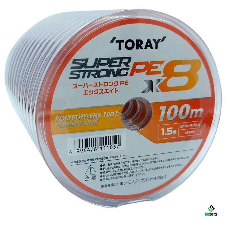 Плетеный шнур Toray Super Strong PEx8 сделан из высококачественного полиэтилена. Обладает максимальной прочностью и чувствительностью. Высокая плотность плетения и гладкая поверхность значительно улучшают скольжение шнура, обеспечивая дальность заброса приманок. Подходит для любых видов рыбной ловли. Шнур выпускается блоками из 12 катушек по 100 метров на каждой. Намотка непрерывная, поэтому вы можете приобрести 100, 200, 300 или более метров. Цена указана за 100 метровую катушку. Качественный, высокотехнологичный японский плетеный шнур по доступной цене.