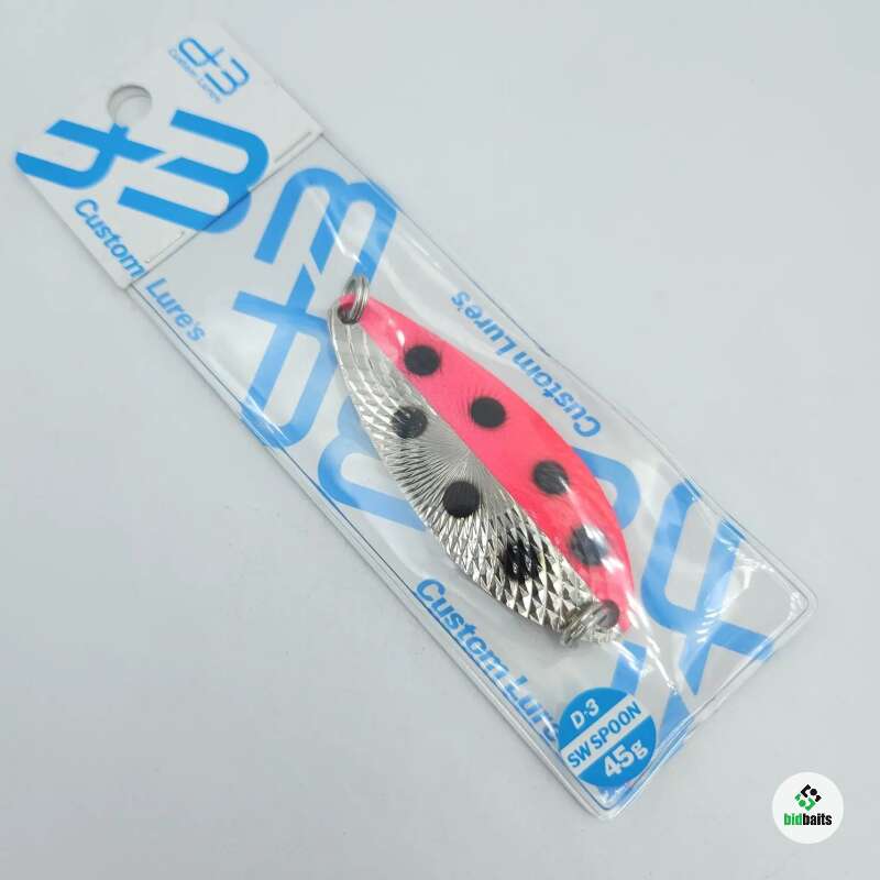 D-3 Custom Lures SW Spoon – серия японских колеблющихся блесен. Приманки предназначены для ловли крупных лососёвых рыб (сима, кета, чавыча, сёмга, кумжа, кунджа, таймень). Эффективны как в пресной воде ( в условиях сильного течения и полноводных рек), так и в морской (приустьевые и эстуарные зоны рек).
