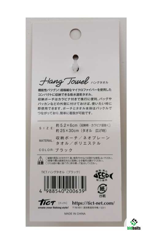 полотенце для рук во время рыбной ловли TICT Hang Towel с карабином (на ремень, на сумку, рюкзак)