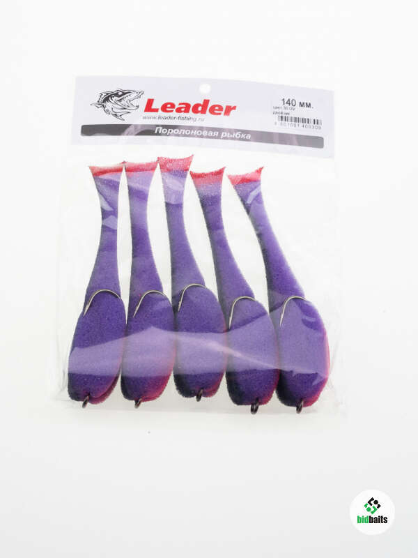 Поролоновые рыбки Leader 140мм., оснащенные на двойнике, цвет 30 (5шт в упаковке)