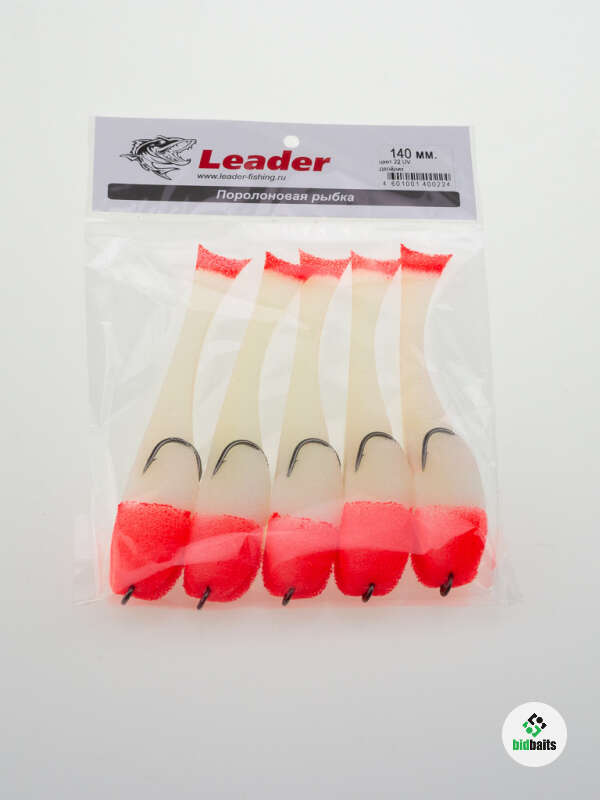 Поролоновые рыбки Leader 140мм., оснащенные на двойнике, цвет 22 (5шт в упаковке)