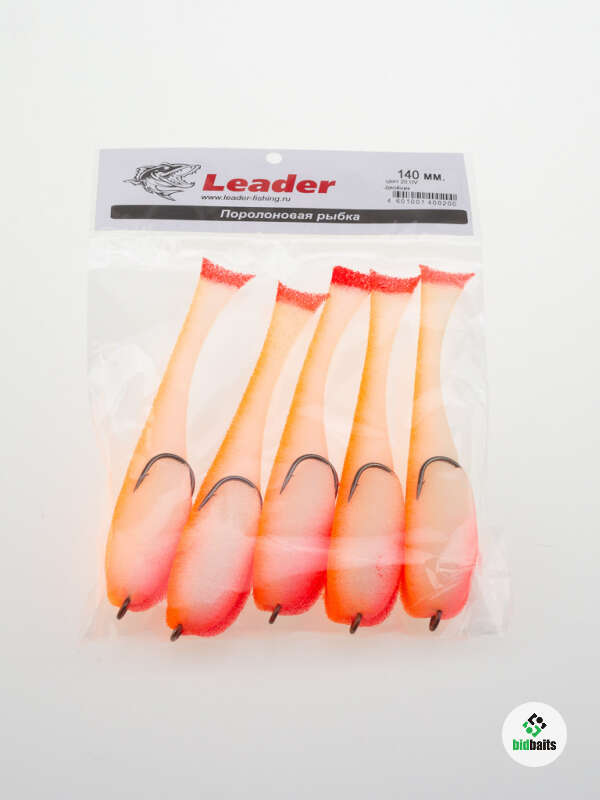 Поролоновые рыбки Leader 140мм., оснащенные на двойнике, цвет 20 (5шт в упаковке)