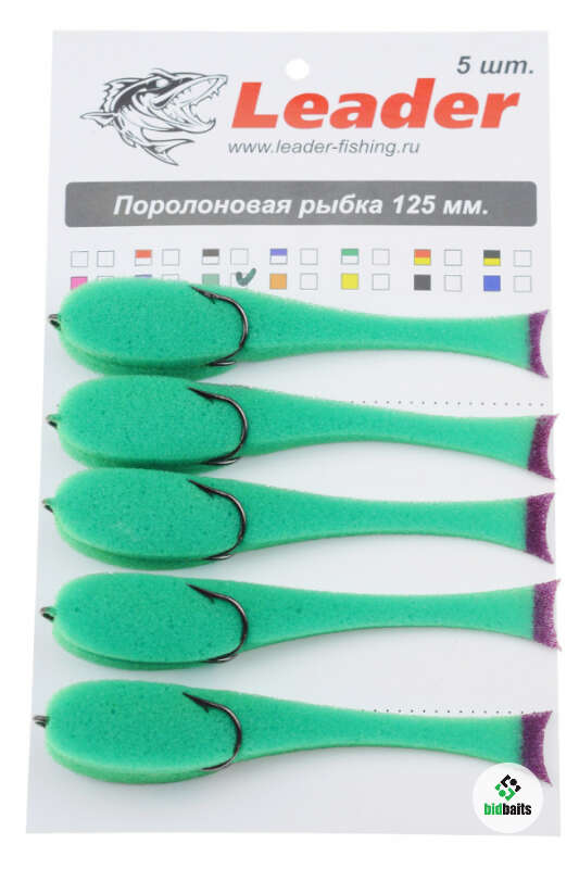 Поролоновые рыбки Leader 140мм., оснащенные на двойнике, цвет 11 (5шт в упаковке)