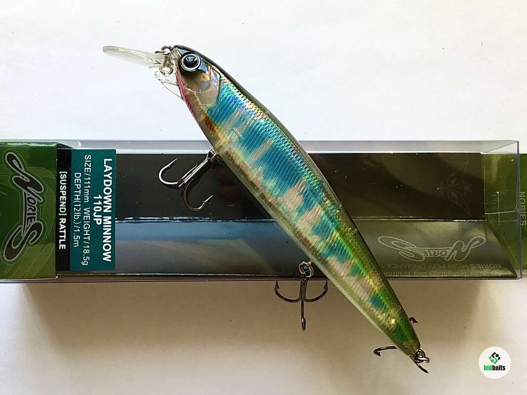 LAYDOWN MINNOW 110JP - новая модель от компании Nories. В отличие от MID110, воблер совершает мелкочастотные колебания в воде, из-за чего больше подходит под ловлю пассивной рыбы в холодной воде. Приманка хорошо сочетается с любыми типами анимации: вялый твичинг, резкие рывки, классические два рывка/пауза и даже равномерная проводка под силу этому воблеру .При длительной паузе после рывка, LAYDOWN MINNOW 110JP зависает немного головой вверх, такое положение максимально имитирует поведение настоящей рыбы. Встроенная в корпус шумовая капсула, дополнительно привлечет хищника с дальнего расстояния.