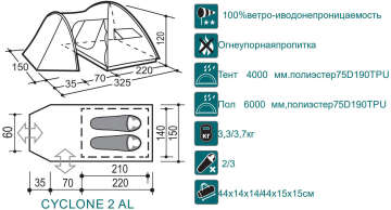 Canadian Camper CYCLONE 2 Al - просторная, удобная палатка с большим тамбуром на третьей выносной дуге.