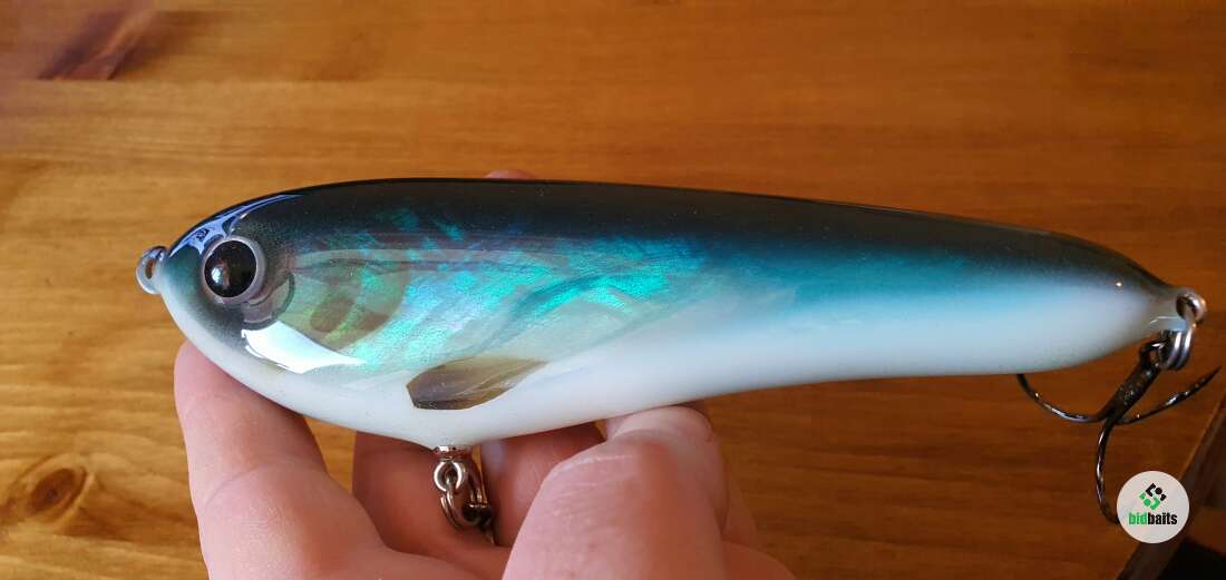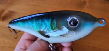 Grinder - это рывковая приманка - глайдер, которая движется из стороны в сторону, как и положено джеркбейту, анимируется небольшими рывками удилища. Lovely Lures Grinder Abalone Shell обладает удивительным блеском благодаря многослойному покрытию C&W эпоксидной смолой - 10 слоёв. В данной модели (Abalone Shell) применена инкрустация пластинами ракушки морского моллюска Abalone. Такие версии изготавливаются долго, кропотливо, но результат того стоит. Перед вами произведение искусства джеркостроения в исполнении известного шведского мастера.