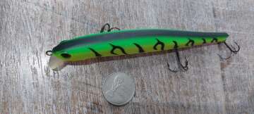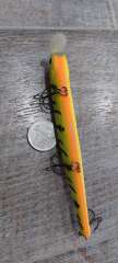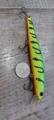 Состояние на фото - в этом случае затрудняюсь дать объективную оценку воблеру, как правило следы использования ярко выражены, может быть не всё хорошо с лкп,но видимых дефектов по функционалу не обнаружено