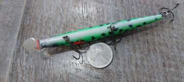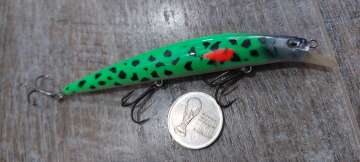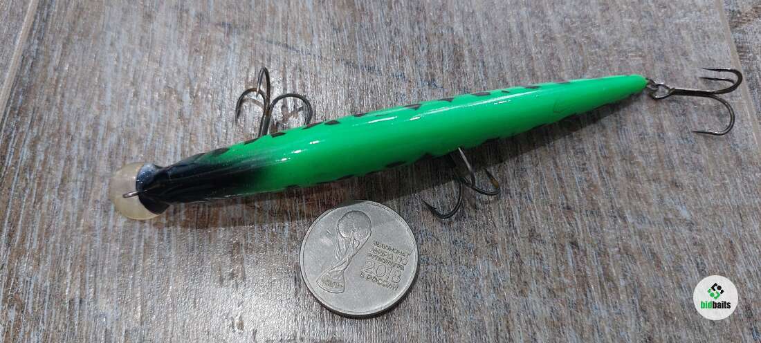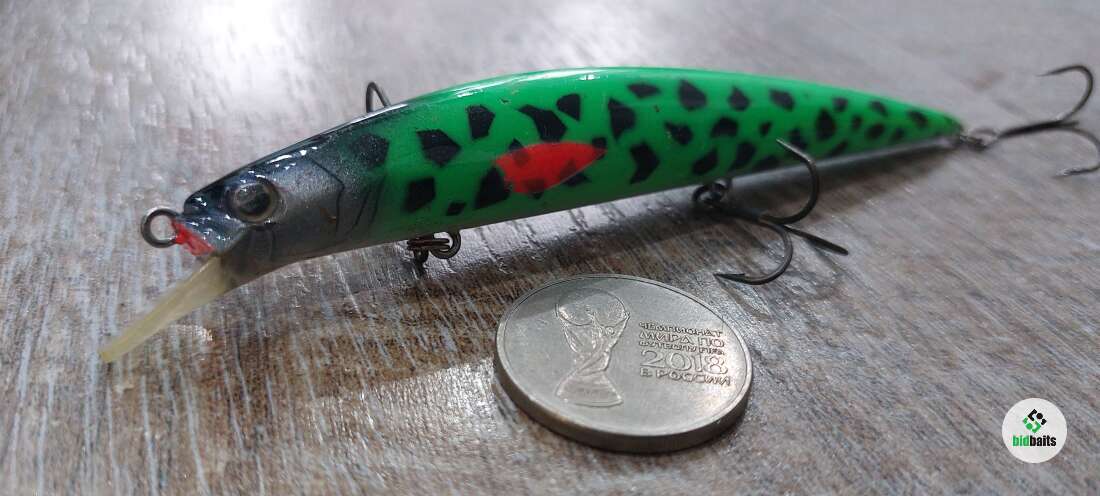 Состояние на фото - в этом случае затрудняюсь дать объективную оценку воблеру, как правило следы использования ярко выражены, может быть не всё хорошо с лкп,но видимых дефектов по функционалу не обнаружено