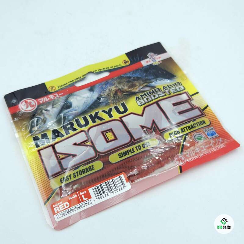 Marukyu силиконовые "съедобные" черви Isome Soft IS-04 7088 size L (11см) цвет красный (15шт)