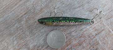 Состояние на фото - в этом случае затрудняюсь дать объективную оценку воблеру, как правило следы использования ярко выражены, может быть не всё хорошо с лкп,но видимых дефектов по функционалу не обнаружено