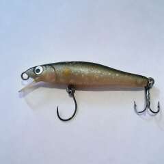 Воблер суспендер 50мм, 2,9гр. Состояние рабочее, есть вздутия лакокрасочного покрытия (видимо долго лежал во влажных условиях).