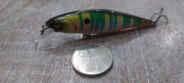 Состояние на фото - в этом случае затрудняюсь дать объективную оценку воблеру, как правило следы использования ярко выражены, может быть не всё хорошо с лкп,но видимых дефектов по функционалу не обнаружено